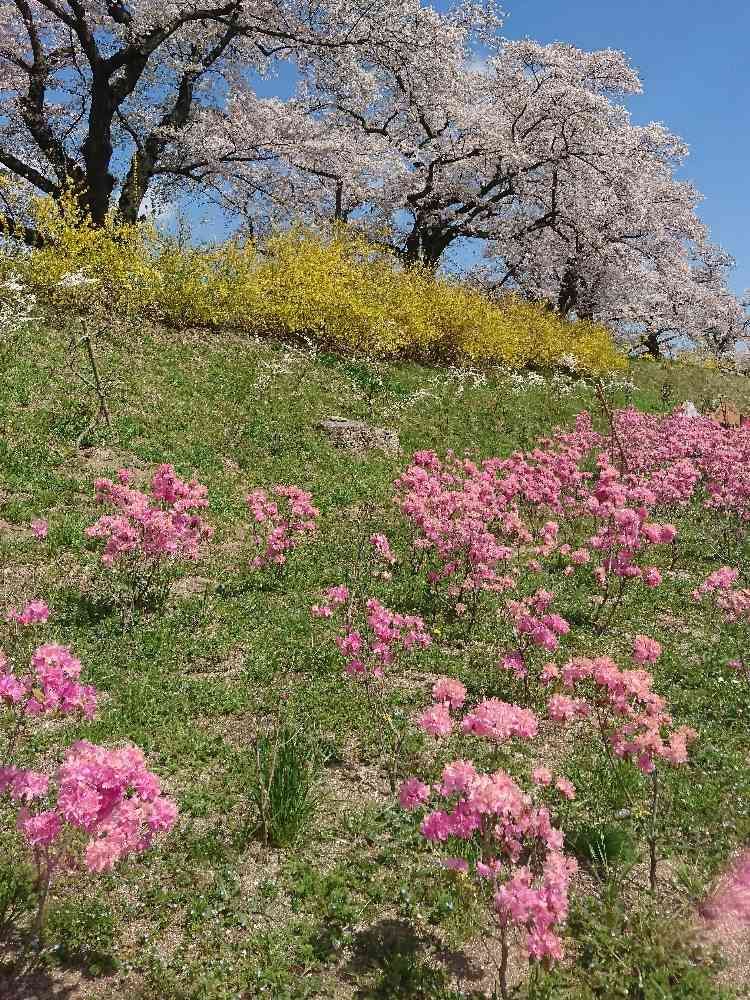 桜、レンギョウ、桜のコラボは素敵ですね🤗