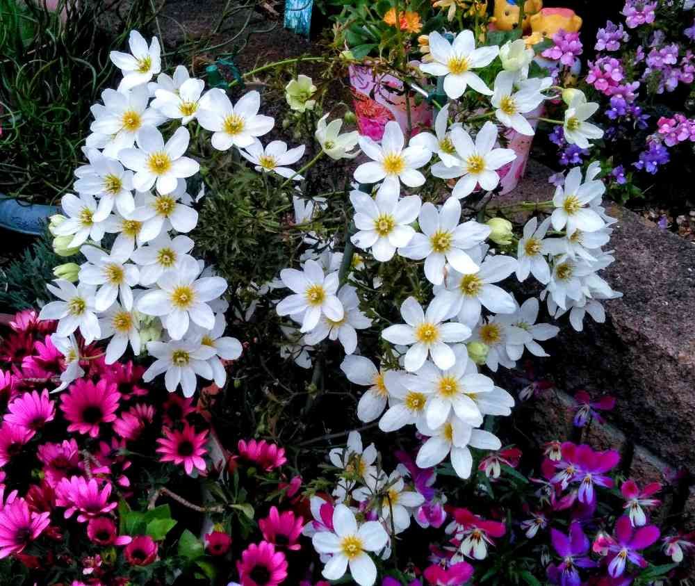 散策の通り道、玄関前の花壇に、可愛いお花がいっぱい…。白い此のお花