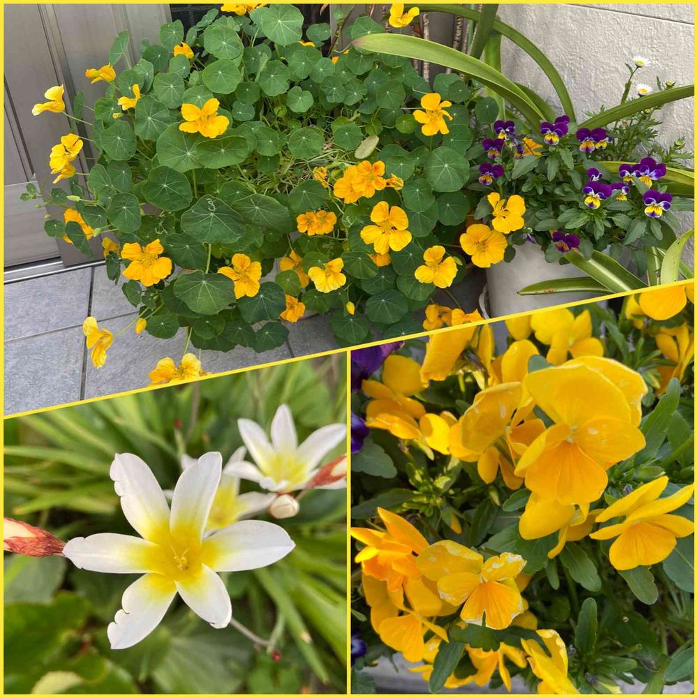 黄色いお花は元気の印みたいだもんね。今街中が元気がないから黄色いお花からパワーを貰おうね💛白いお花の中が黄色いのはスパラキシスだよん*·♚॰०
