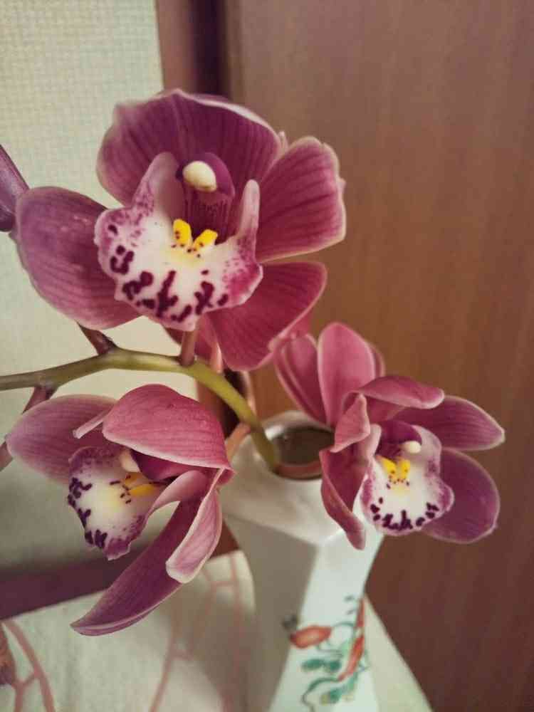 綺麗に開いたシンビジウム、この色合いも可愛いな❣