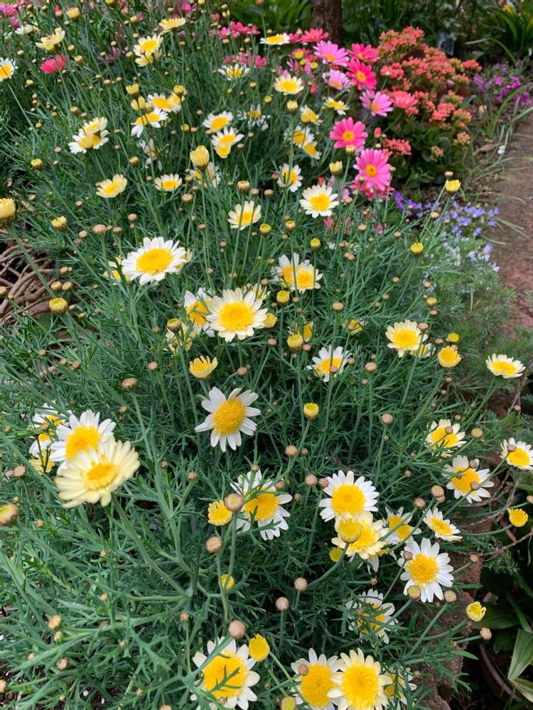 2年目マーガレットソレイユをメインに南花壇黄色に溢れています💕