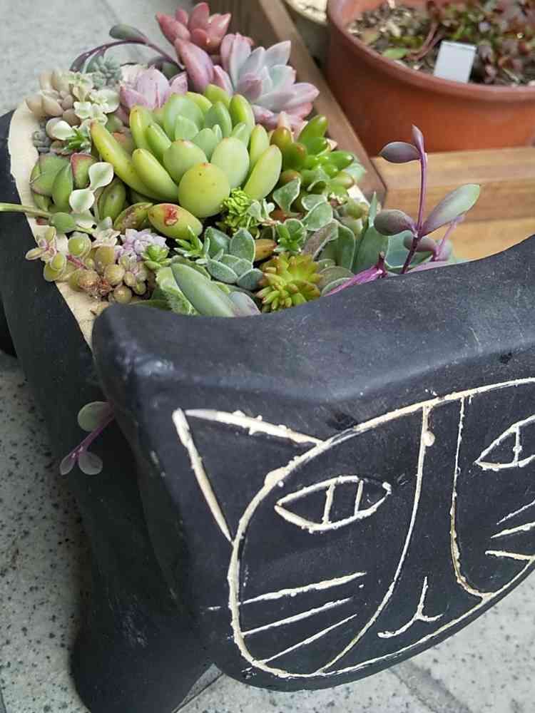 HCで見つけたネコの鉢ネコ好きさんにはたまらない🥰🎶早速多肉を寄植えしました👌