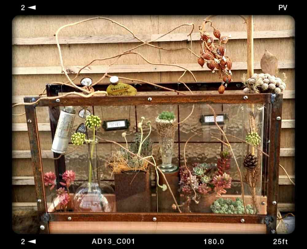 さん、おはようございます(^-^)ありがとうございます♪自分の収集した植物達を生きた現在進行形の標本の様に愛でる木箱として、おじいさんとおいっこさんと作ったモノなんです☆
