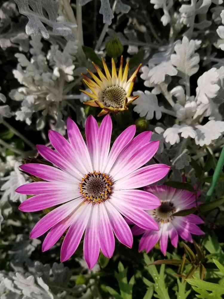 同じ時期に寄せ植えたオステオスペルマムのチロルとカルメンも