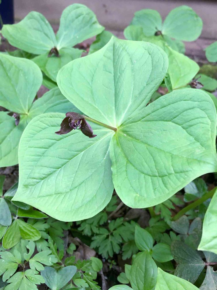 延齢草です。五箇山の知人宅から我が家にきて10数年、しっかり根付きました。