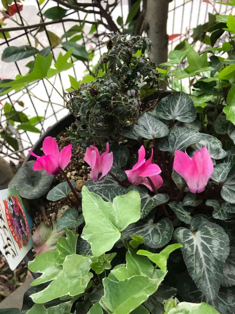 ガーデンシクラメン、可愛く並んでるね~💕雨風で傷まないといいねf(^_^)