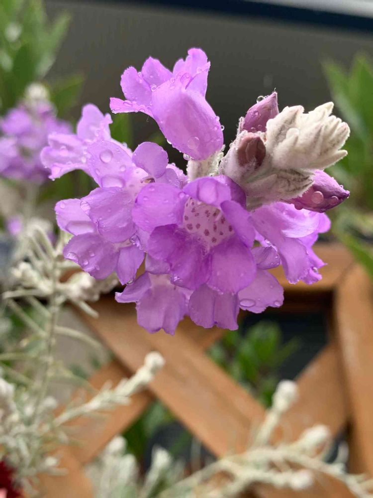 エレモフィアニベア💜昨日からの雨で横に倒れそう