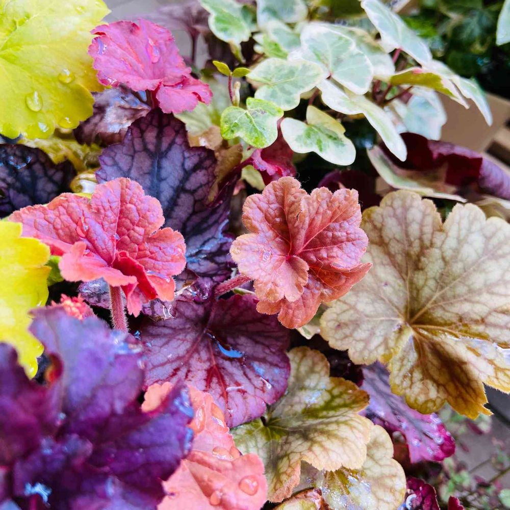 ごちゃ混ぜヒューケラ寄せ植え💚💜❤️