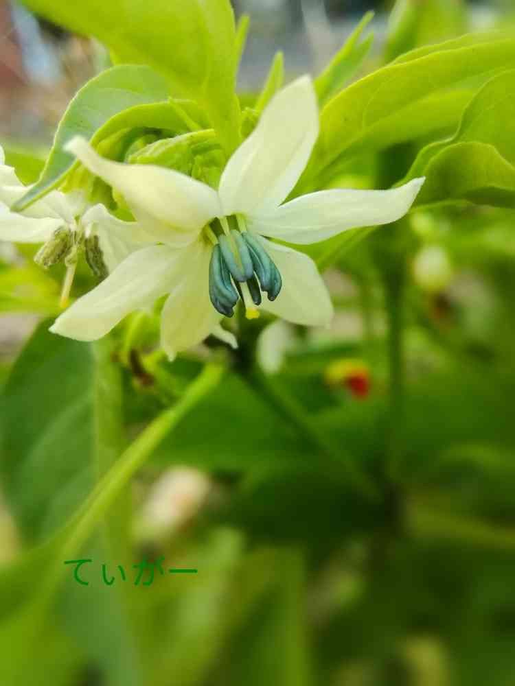 赤唐辛子のお花は、青いシベがとってもキレイ(﹡֦ƠωƠ֦﹡) . 。º*