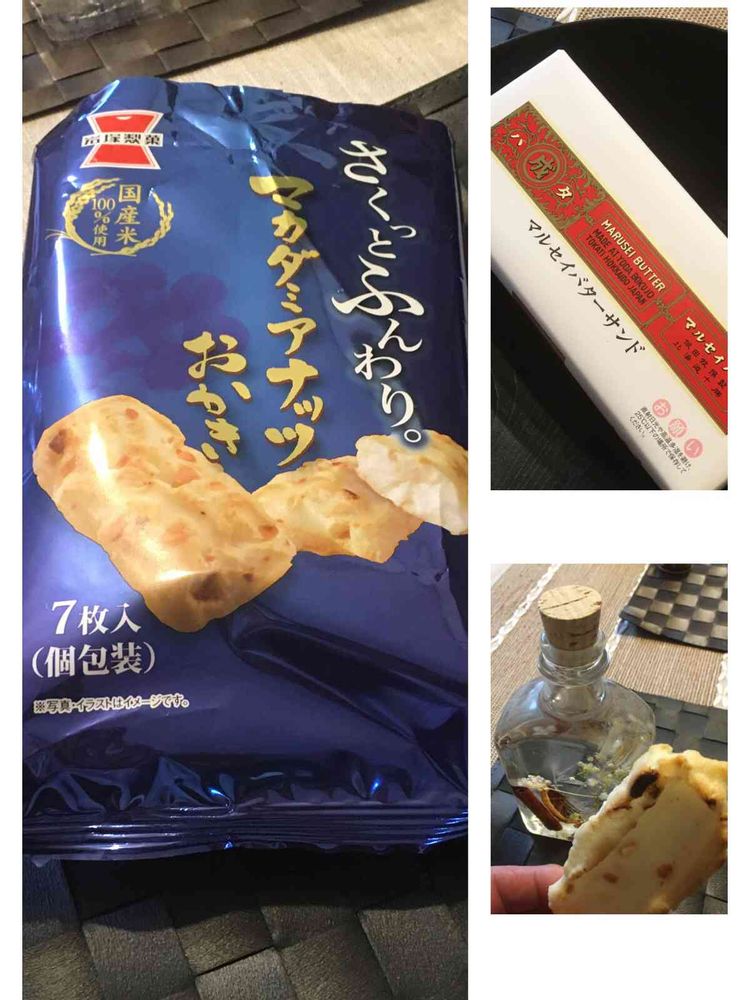 で今日は岩塚のマカダミアおかき。もともとは味のれんで出していましたが、岩塚製菓ブランドでも2、3年前から出ています。