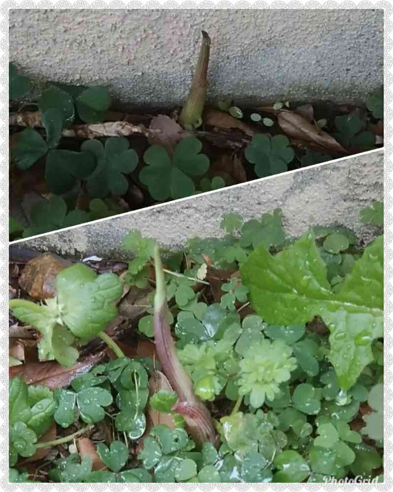 花壇のみょうが3号も発芽してました。今年は2本!増えた!そもそも植えた記憶のないみょうが3号ですが、楽しみです❤️……そろそろ雑草むしりたいんだけど、今日は雨なので断念。また今度。