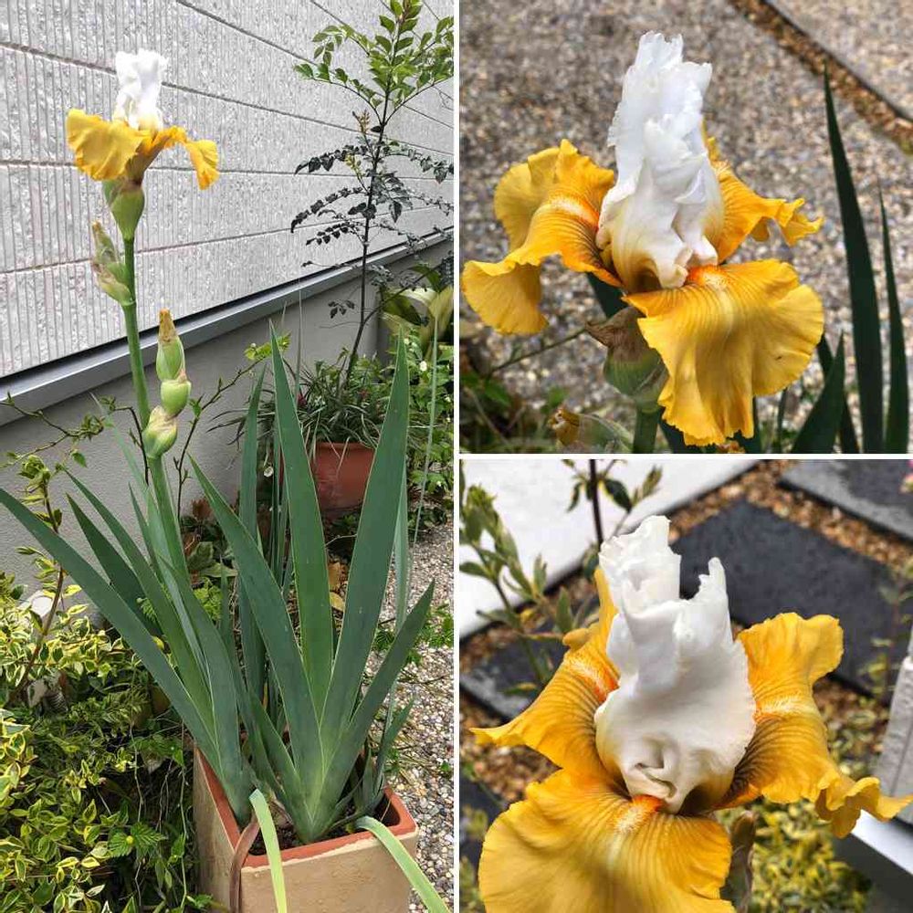 先月、蕾が突然🤣出ていたジャーマンアイリスが戻ってきたら咲いてました❣️
