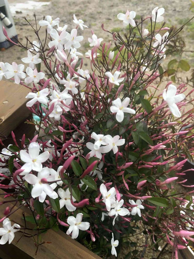 羽衣ジャスミン、蕾はピンクなのに咲くと白いお花なのが可愛いですよね😍