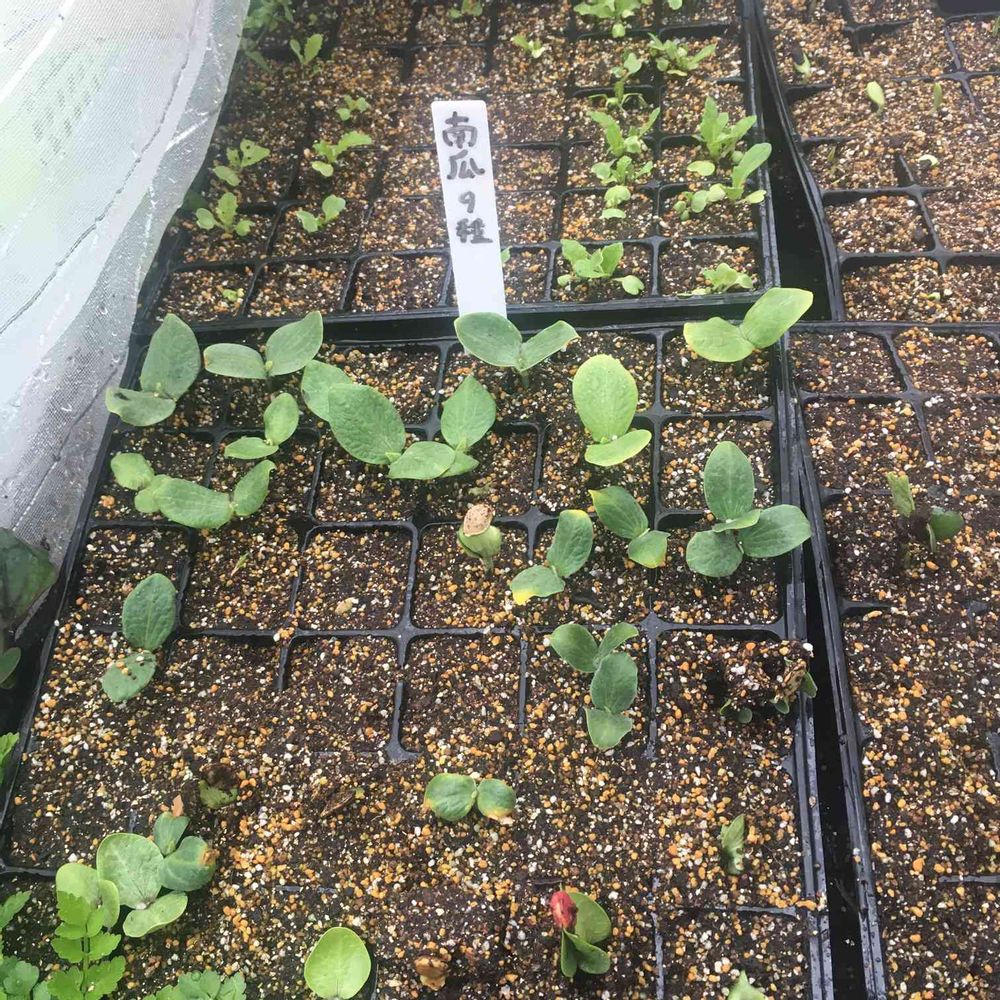 南瓜9種の芽生え。皆元気そうです。
