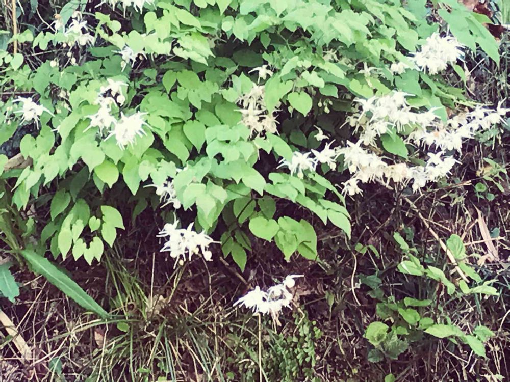 低い場所ですが、山崖に白い花があり、もしかして、、、と思い、写真を撮っておきました!