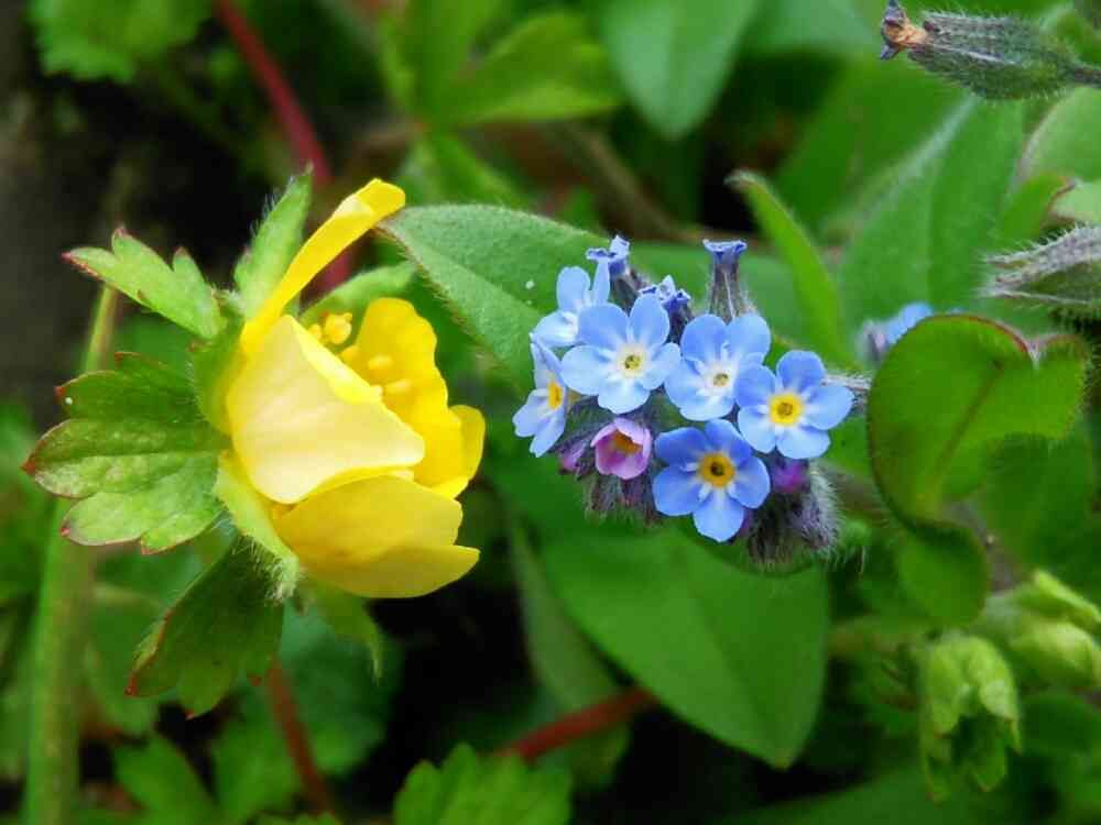 僕にはヘビイチゴがお月様で、ノハラムラサキの花の模様がお星様に見えました🌙🌌