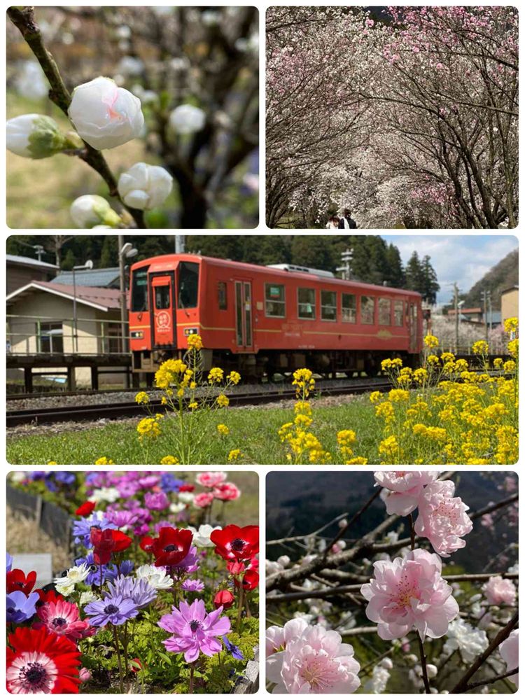 ここは、自然がいっぱいでいい所なんだよ😊 花桃も綺麗で少しの時間だったけど楽しめた💕🚃🚶♀️