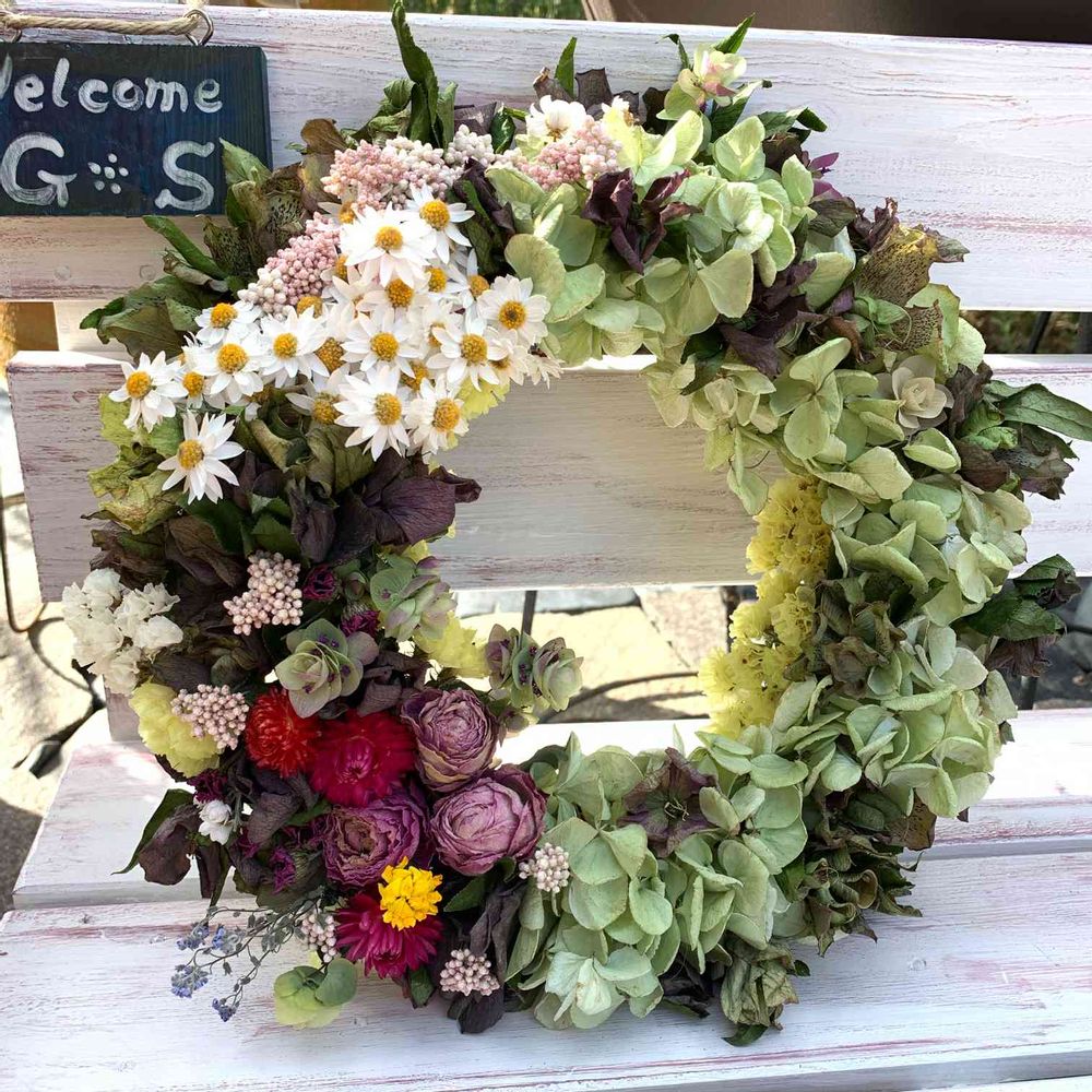 リースどころかドライフラワーをやり始めたのは昨年の夏くらいからでそれまで全くドライフラワーに興味がありませんでした😅