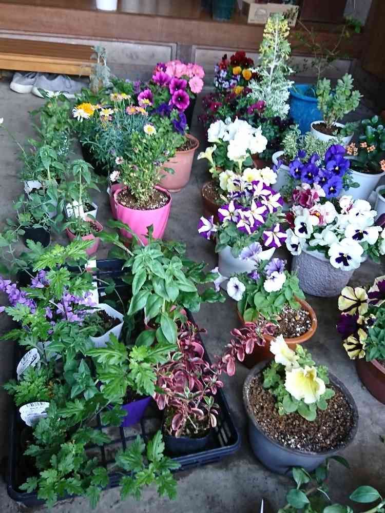 強風の為に 玄関に避難してる 鉢植えさんと 昨日ケース売り 300円だった お花さんたちです👀~💕