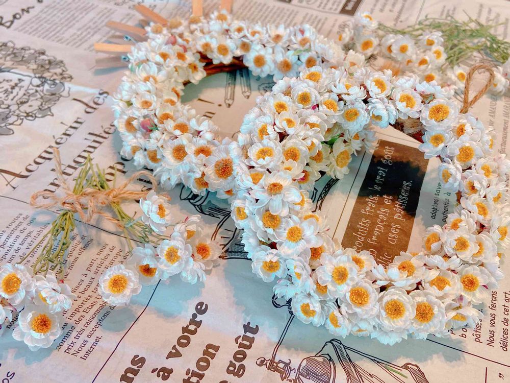 100均のリース台にペタペタするだけで可愛い〜ですよね〜😆💕💕✨