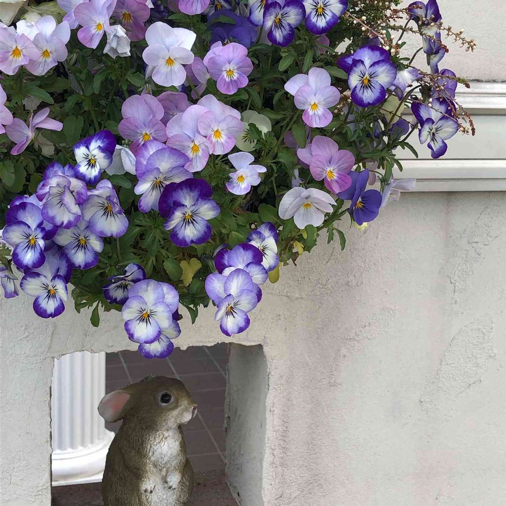 ビオラの優しい色合いに🐰チャン💓💞ほのぼの癒されます☺️🎶