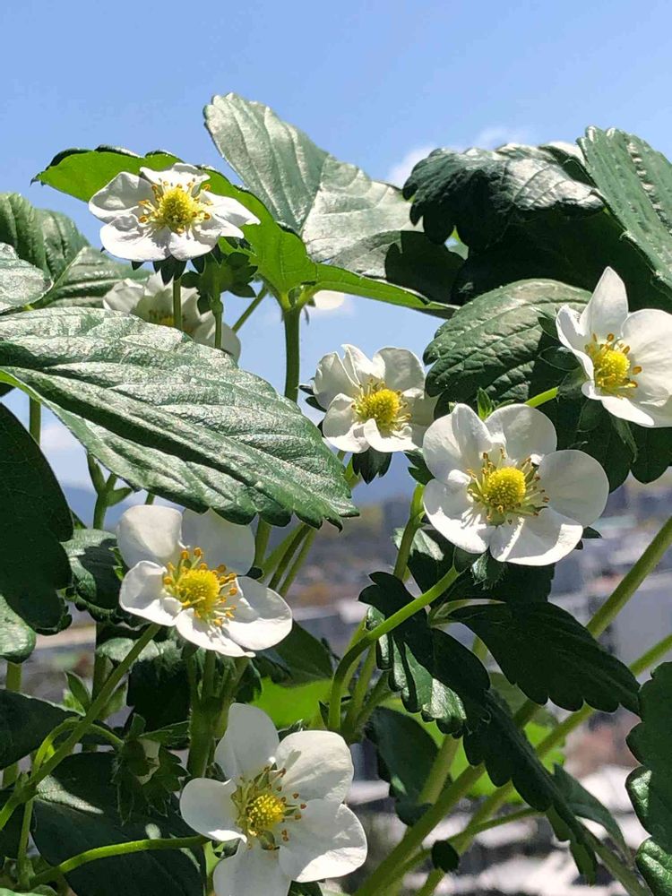 今年は例年よりも花付きがいいようです。このまま実がついてくれるといいのですが🍓