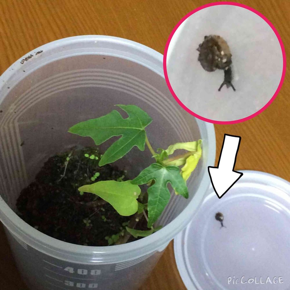 あーっ、これは以前の投稿のパパイヤですね(・∀・) カタツムリ、可愛いけど、かじっちゃうのかな?