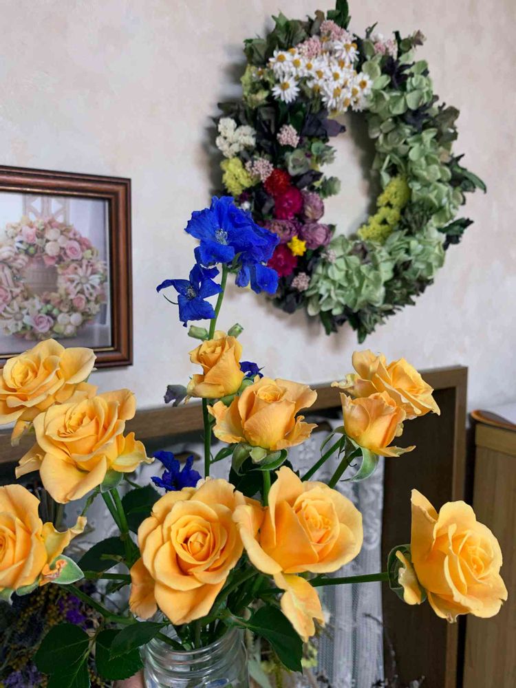 ドライになった薔薇と紫陽花のリース楽しみにしてるよ〜🎶💓