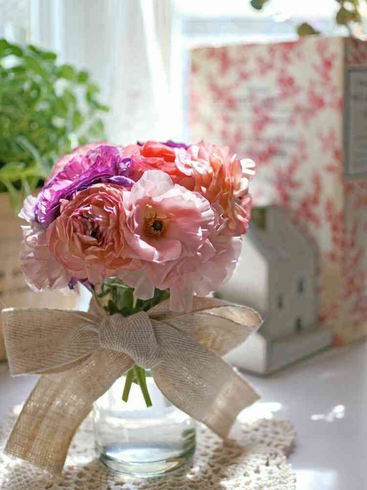 終わりかけのラナンキュラスたちをみんな集めて空き瓶に☺