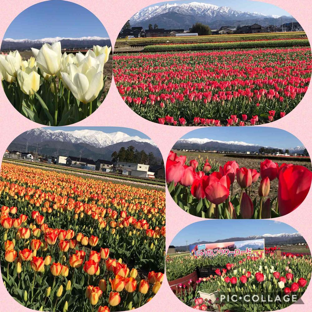 立山連峰とチューリップのコラボ、今年も見られたぁ💓