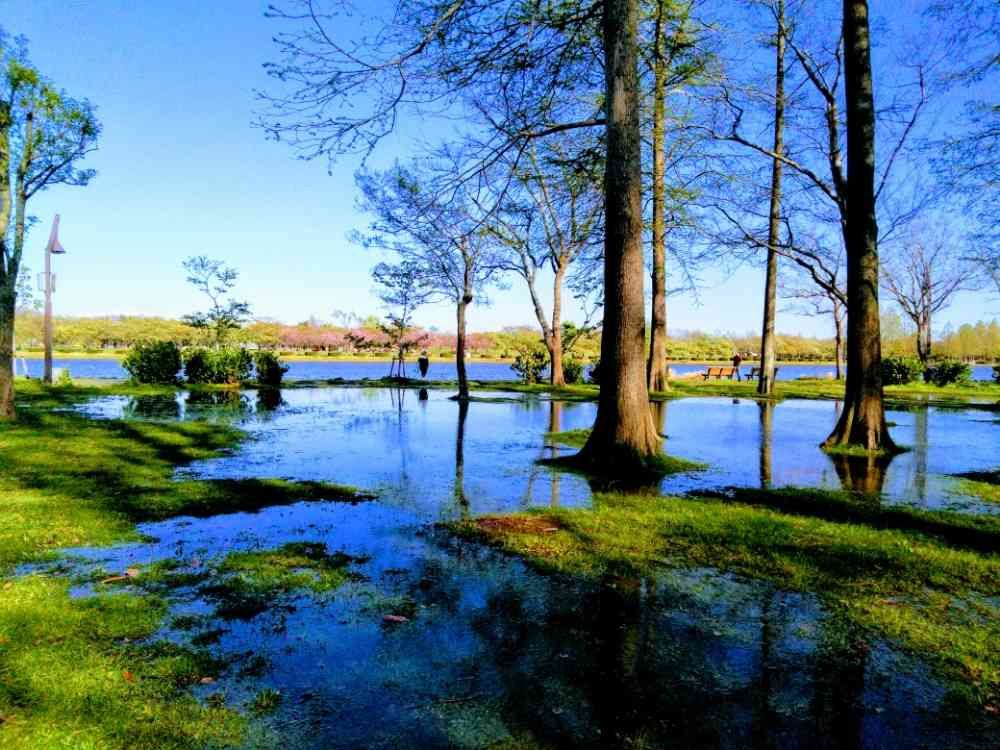 昨日の雨で、メタセコイヤの樹木の下は、池の様な姿に成りました。