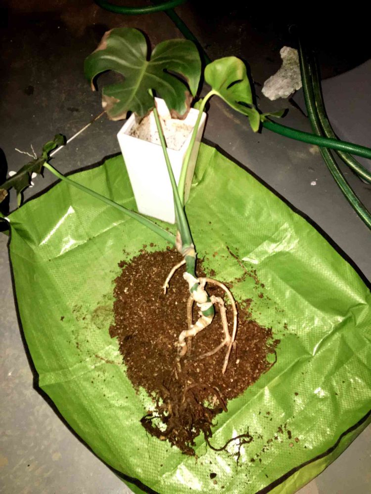 葉先が枯れてきた実生のモンステラデリシオーサ。2011年生まれにも関わらず小さいままで、明らかに根腐れしているとわかっていたのでスリット鉢に移し変えました。