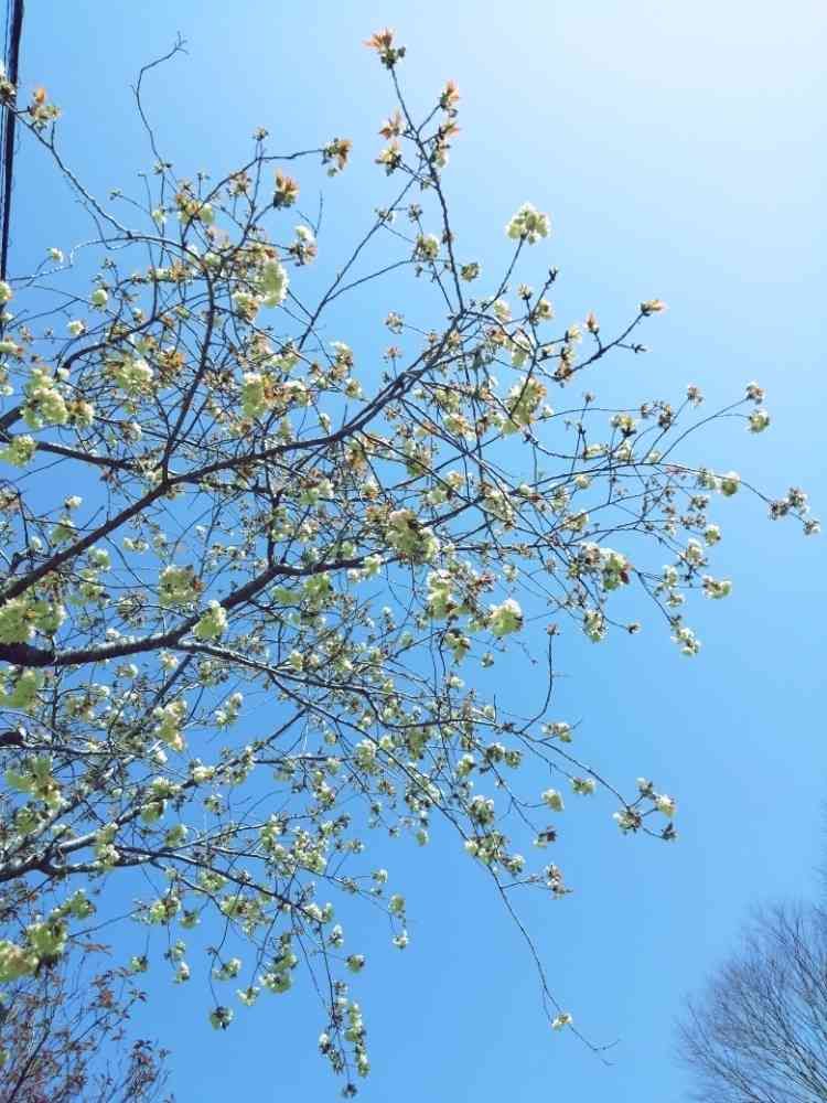 黄緑の桜私も初めて見ました。