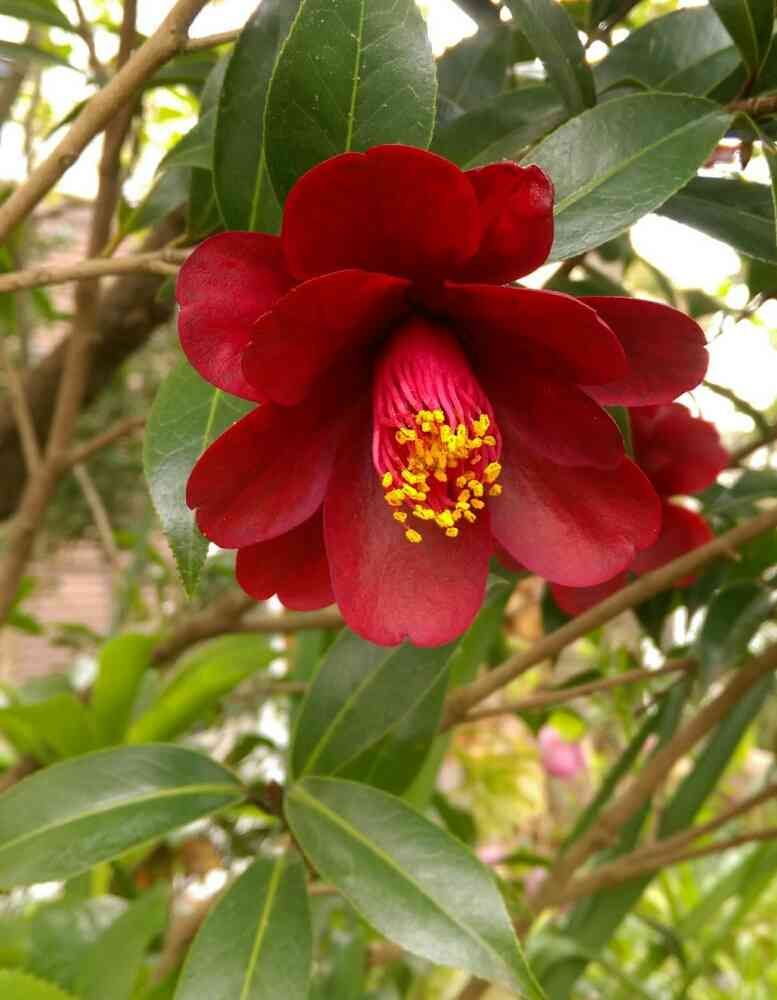 おしべまで赤いなんて、情熱的なツバキですね😊