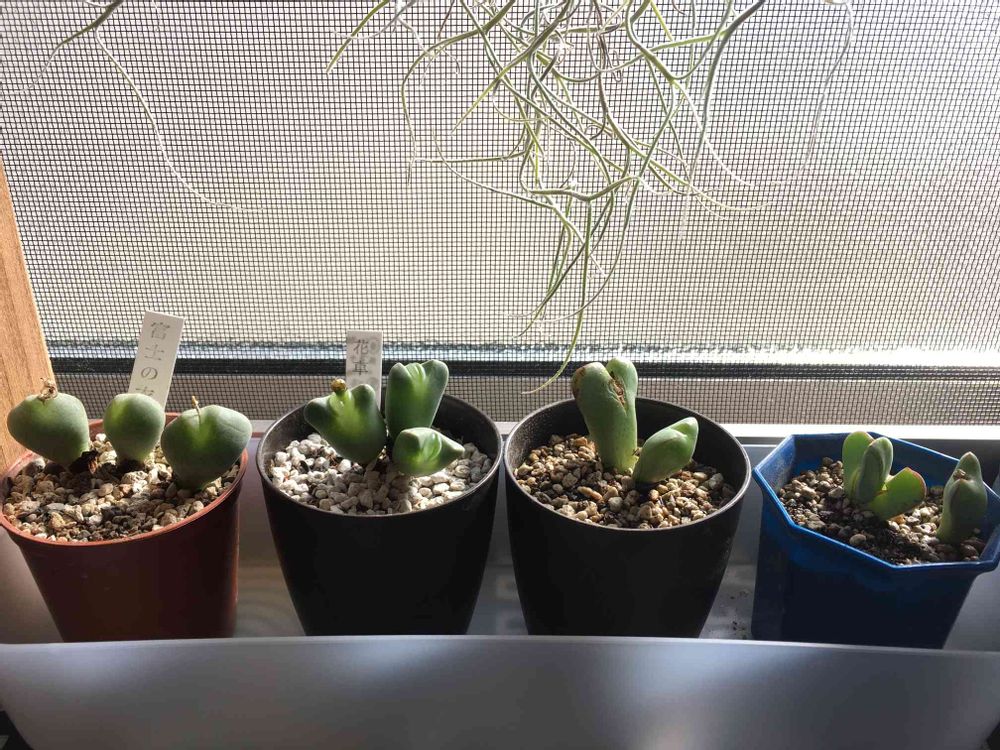 右の2つがシワが入り柔らかくなってきたので昨日 久しぶりに水やったら復活して来ました。シワ無かったら水あまりあげちゃダメだと思ってたけどそれなりに必要???