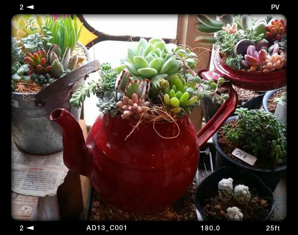 『アジアのチャイポット×多肉とセダム』~蓋にも寄せ植え~