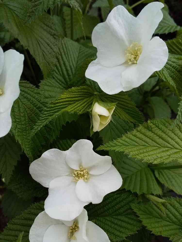 シロヤマブキの実は黒々とした4つの実がなります。見れると良いですね。