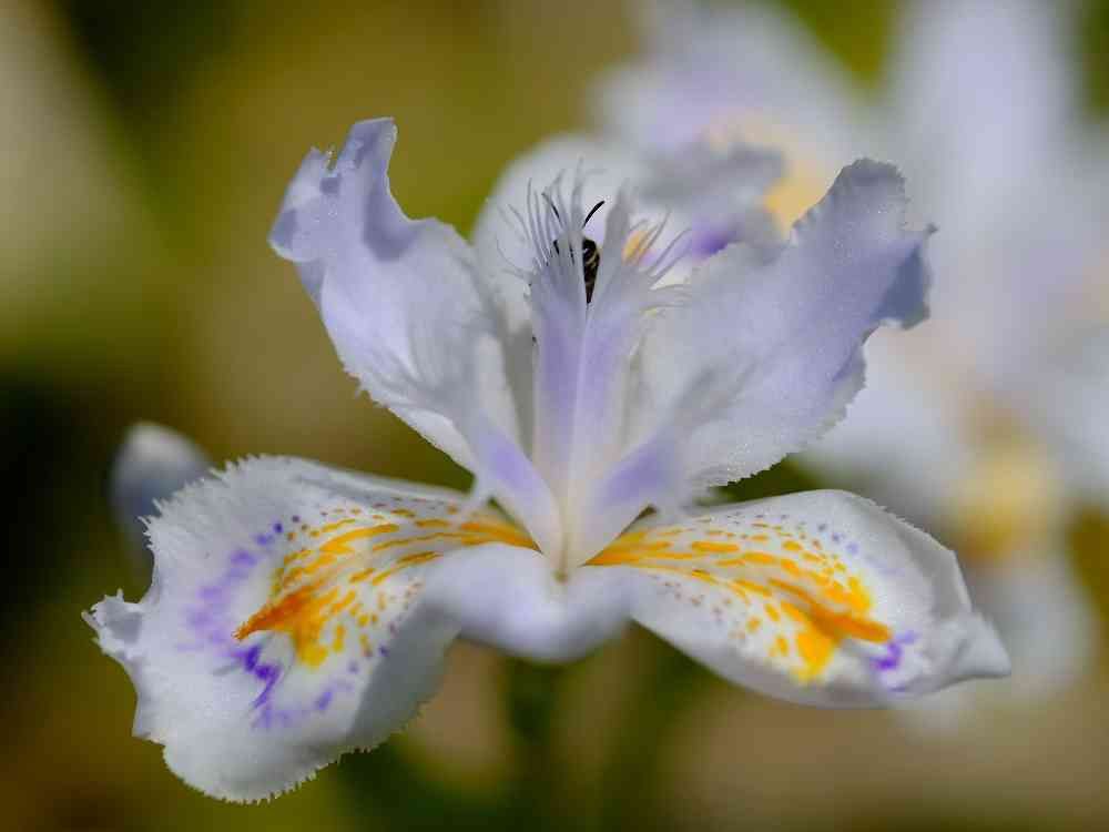 シャガのピラピラと蜜蜂🐝の触覚が