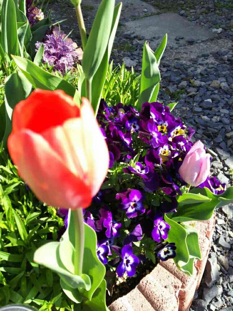 ここ、息子がチューリップを植えたいと、昨年作った花壇で、息子と娘チョイスの花が植えてあります✨