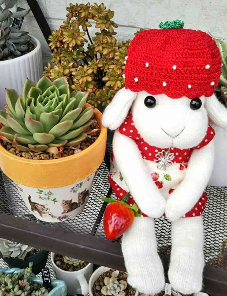 🍓柄ワンピ👗手作りウサギちゃん🐰超かわいいー‼️💕🥰