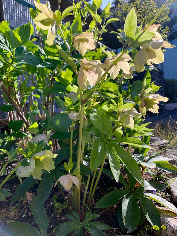 庭のクリスマスローズ^ - ^ 太陽に照らされキラキラ ✨