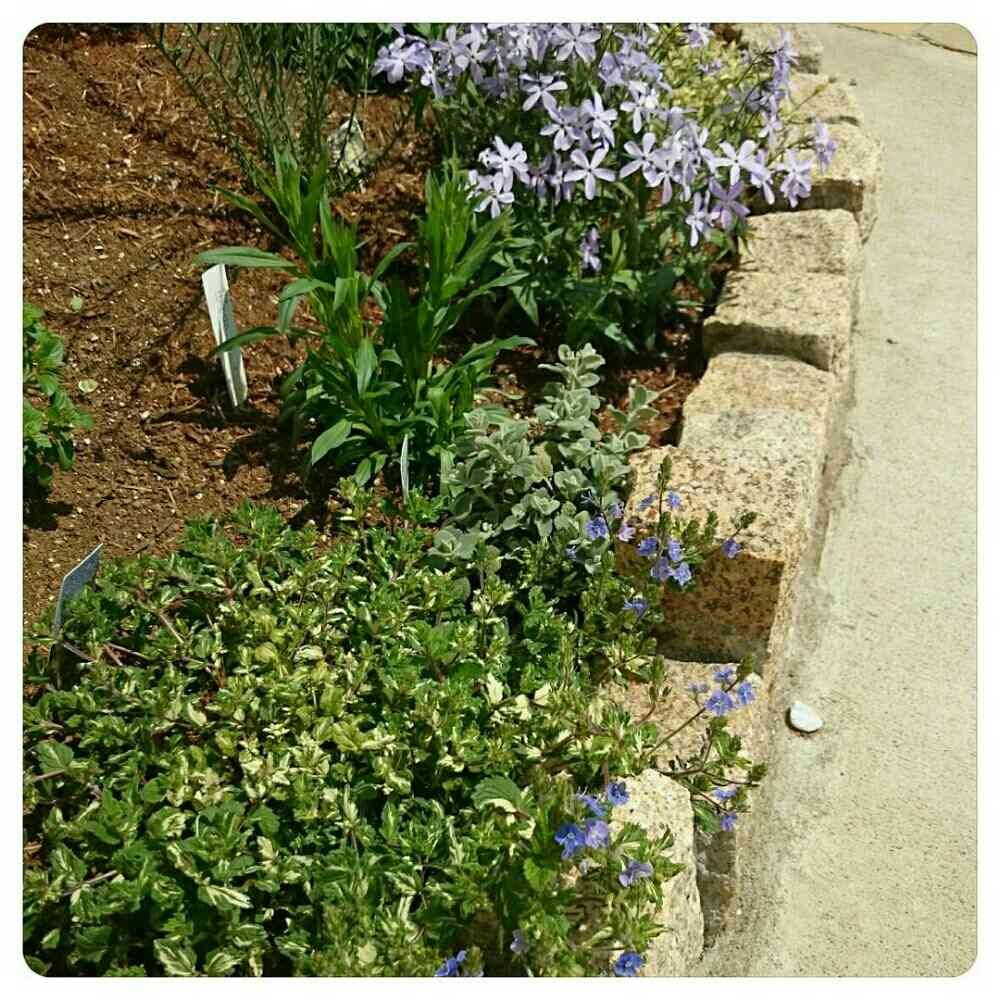植えたばかりのカラミンサやサルビアがまだまだ赤ちゃんなのですが、3年後に大株になることを期待して、まわりのスペースは開けてます😊。その前にグランドカバーたちが多い尽くす勢いですね💦。