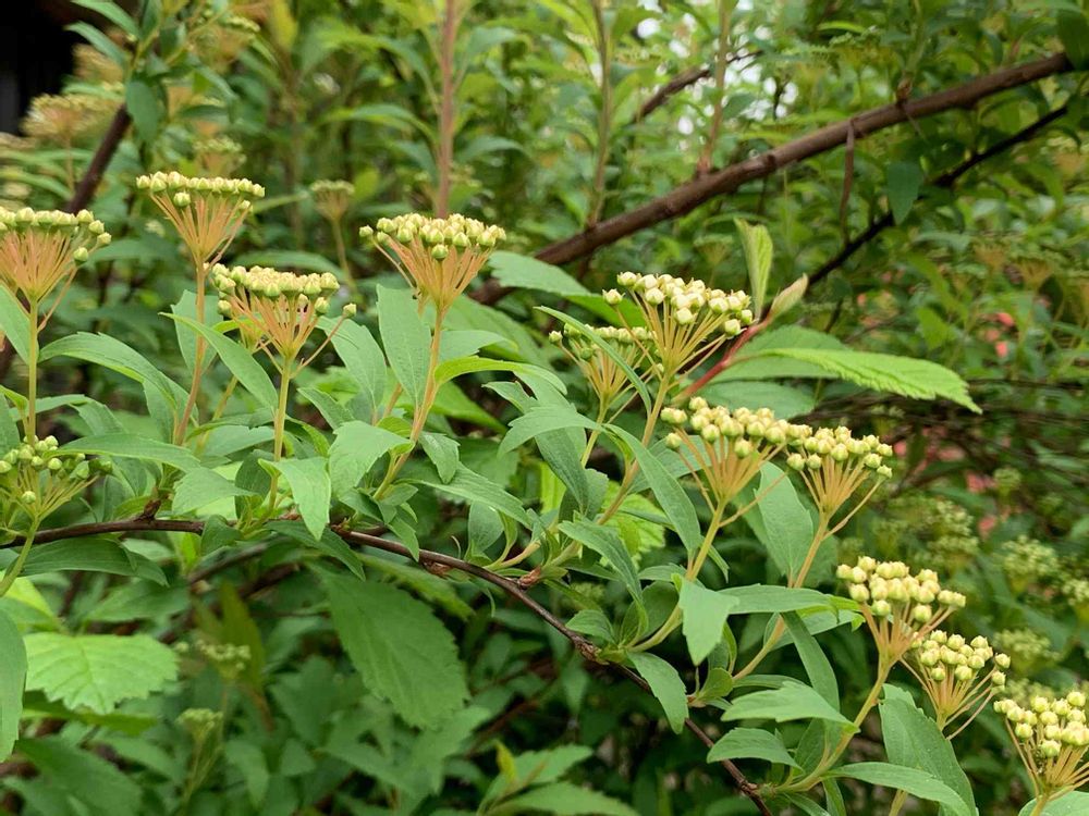 白い花が滝のように咲いている姿も素敵ですが、ひとつ目が咲く寸前の花芽が等間隔に並ぶ姿もステキです☺️