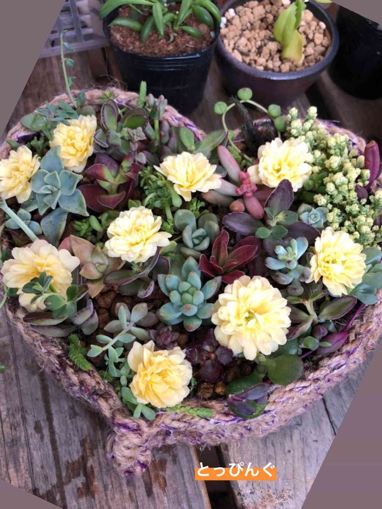 こんばんは🌃多肉さんとお花のコラボ、新鮮でカワイイですね😆💖