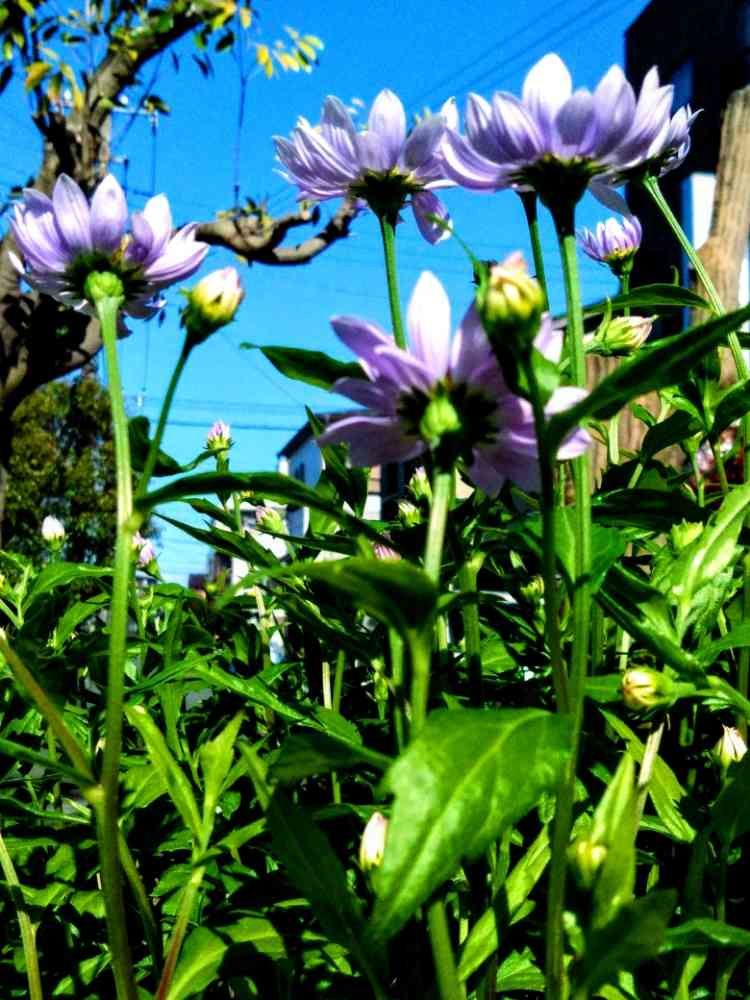 みさと公園入口にある、都忘れと青い空が、綺麗でした。