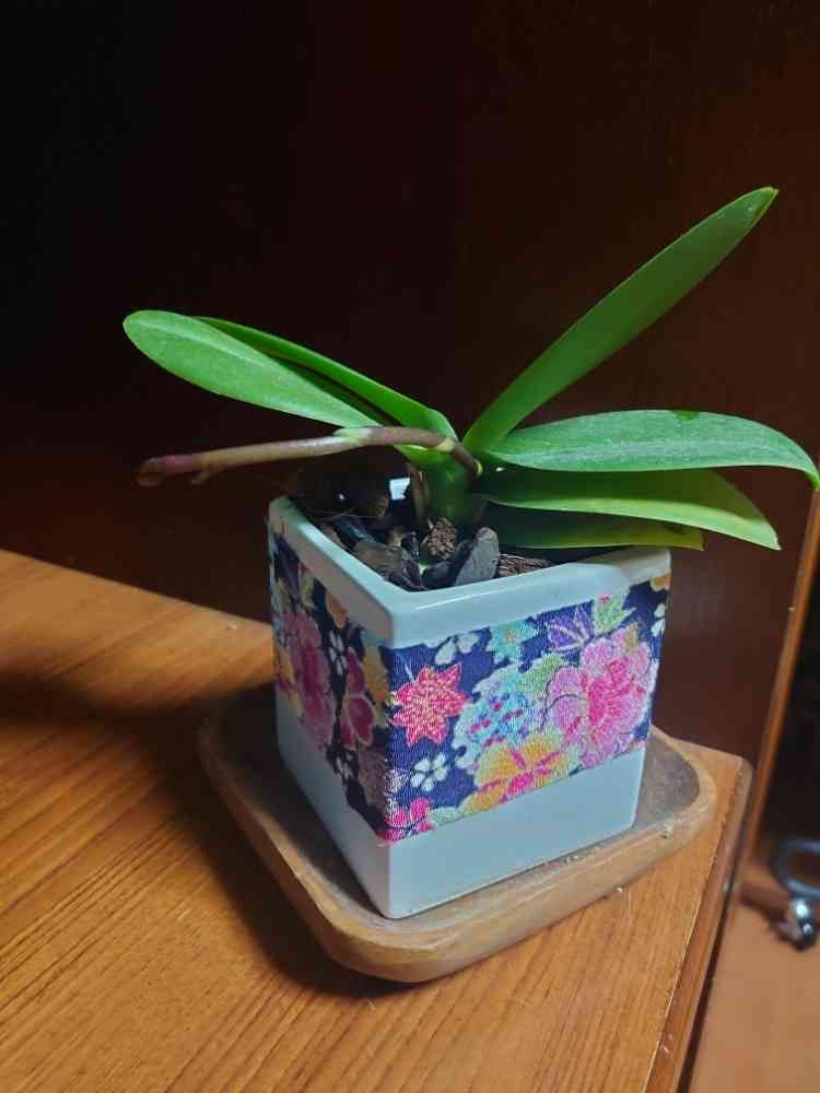 品種不明のミニ胡蝶蘭も花芽を出しています。