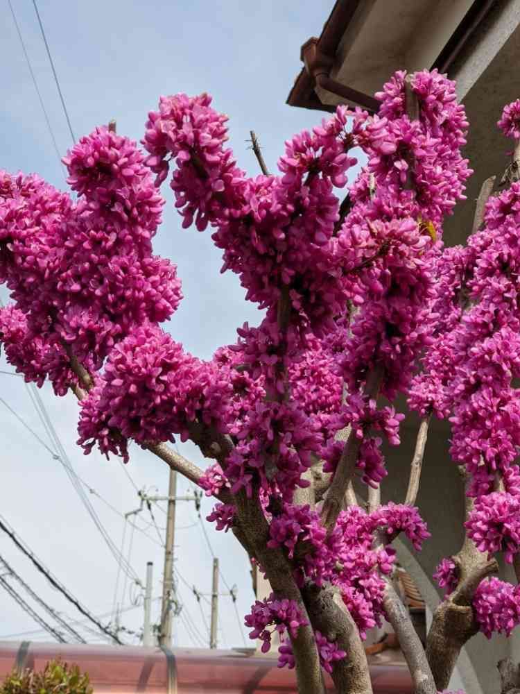 民家の庭先で🌺咲く❗モリモリのハナズオウ🏵