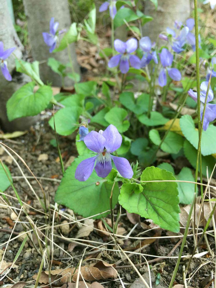 去年近くの森から一株持ってきたスミレ。株が大きくなって、見頃を迎えてます。
