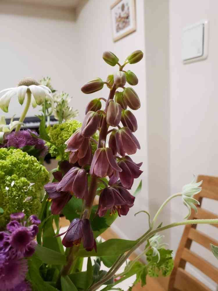 それですそれです!フリチラリアですね‼️花屋さんで聞いて殴り書きでメモしてきた用紙に、『プリチラリマ』と書かれていて、どんなに検索しても花が出てこなかったのです。見事に誤字でしたね。判明してすっきりしました😆ありがとうございました😌