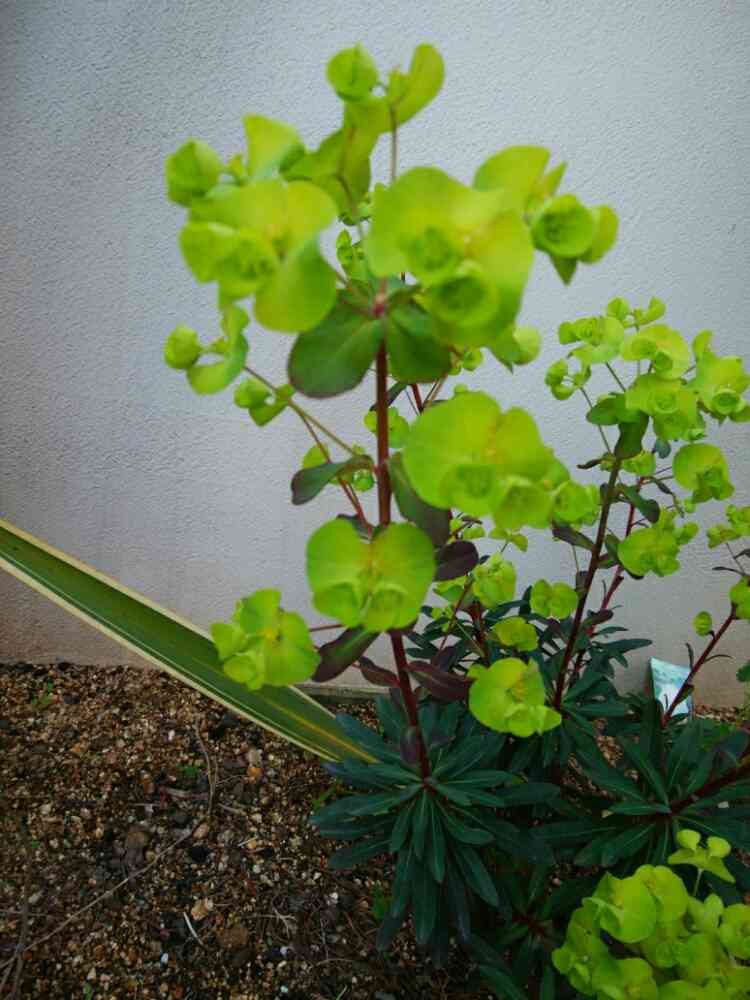 picは花壇の後ろの方でひっそりと咲いていたユーフォルビア🌼見た目は個性的だけど控えめな性格なのね😆